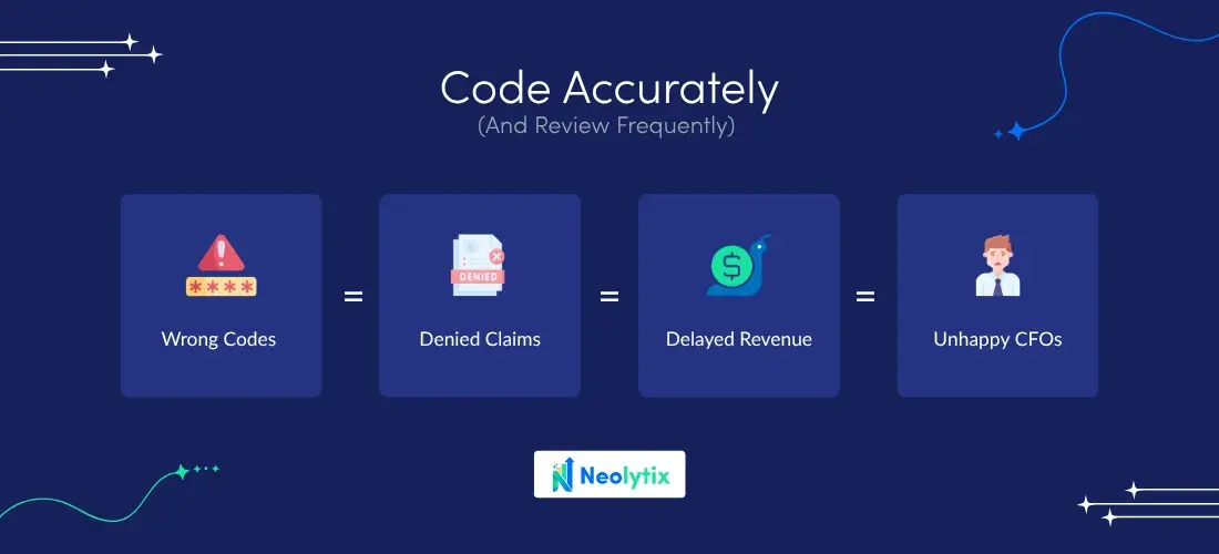 Build a process that includes medical coding audits, coding education refreshers, and AI-assisted code validation where possible.