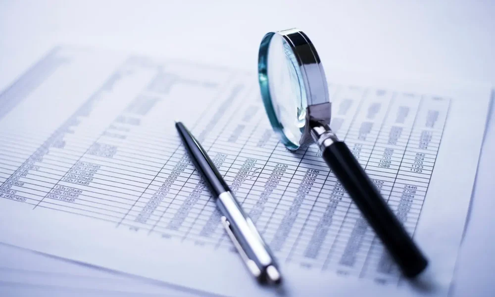 Money, pen, magnifying glass and the financial report