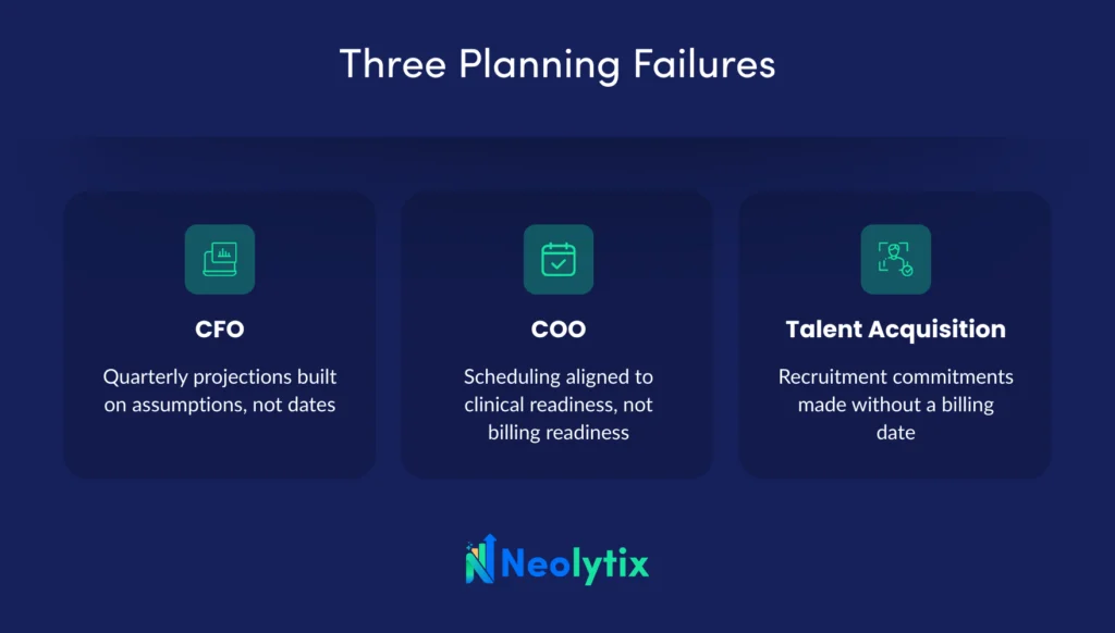 The absence of a reliable revenue start date does not just affect the credentialing team. It fractures planning across three organizational functions simultaneously.